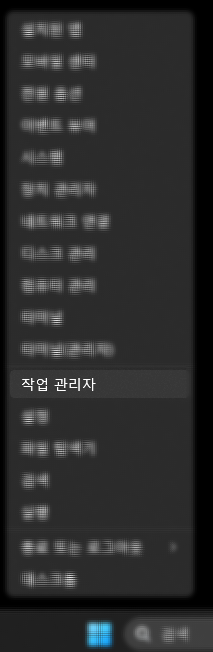 시작 아이콘 우클릭 > 작업관리자 > 성능